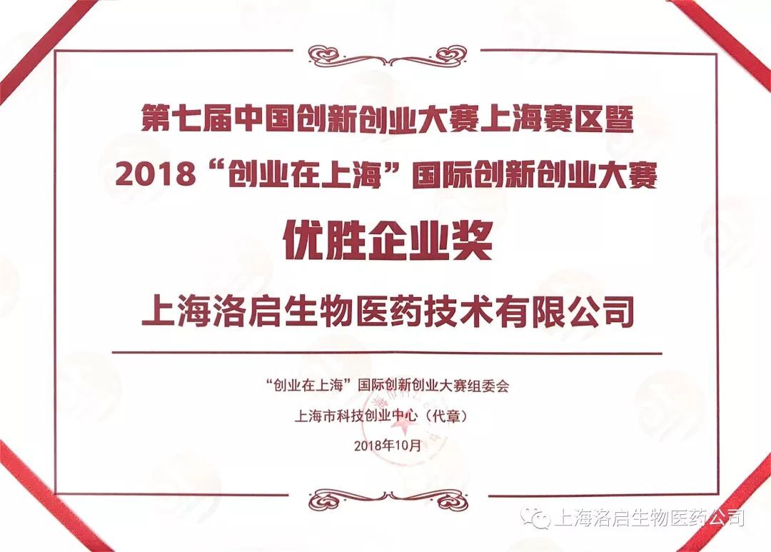 【喜讯】九州ku游官网生物荣获2018“创业在上海”国际创新创业大赛优胜奖