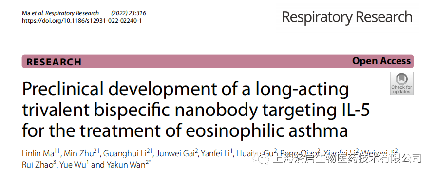 科研力量 I 九州ku游官网生物长效IL-5纳米抗体研究成果于《Respiratory Research》发表!