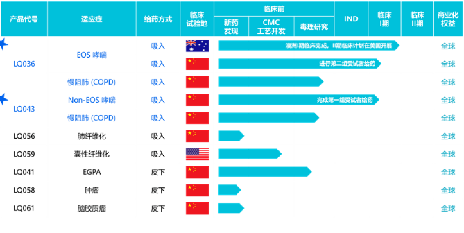 九州ku游官网生物的研发管线中,还包括治疗肺纤维化的LQ056和治疗囊性纤维化的LQ059,同样采用吸入给药。